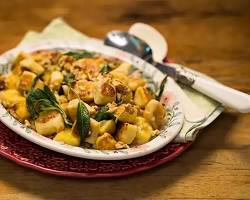 Finalize e Sirva: Adicione os nhoques cozidos ao molho de manteiga e sálvia. Misture delicadamente para cobrir todos os nhoques. Sirva imediatamente, polvilhado com queijo Parmesão ralado.